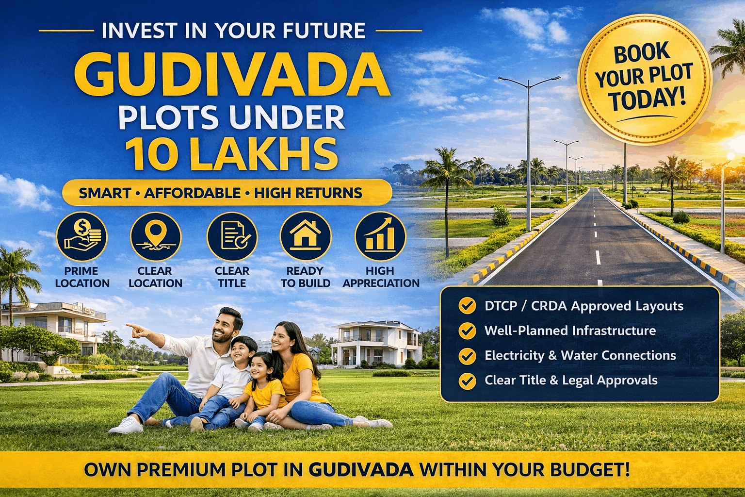 Gudivada’s real estate market is steadily growing. With increasing demand and infrastructure expansion, plots under 10 lakhs today can yield strong returns in the future.