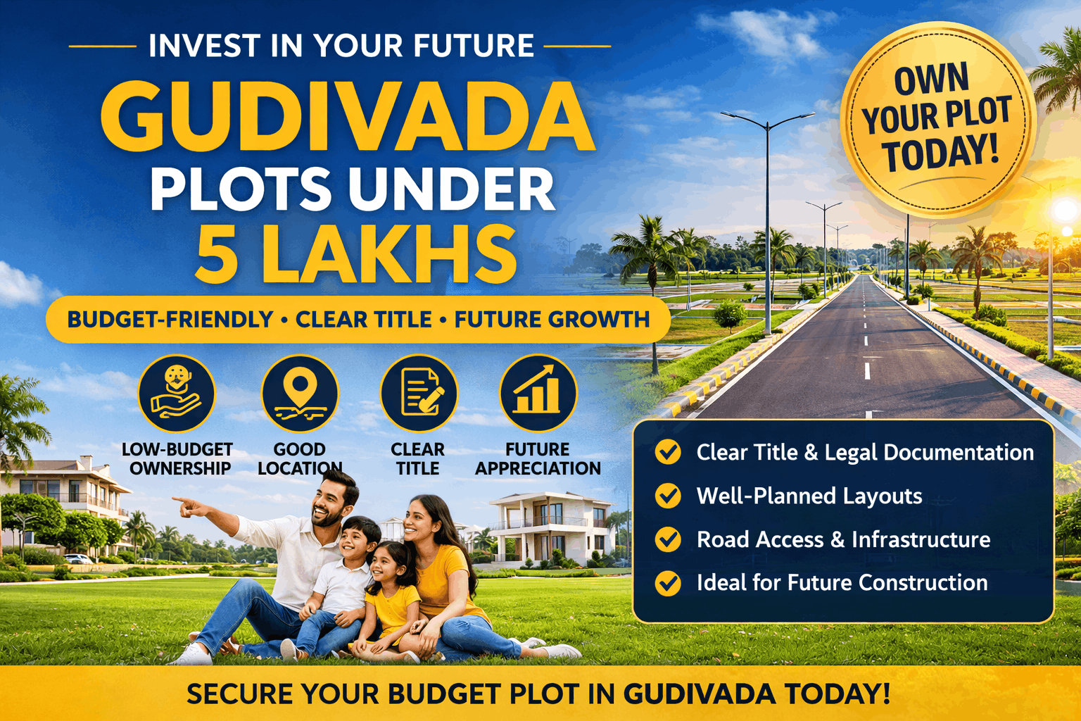 Looking for affordable land investment? Gudivada plots under 5 lakhs are the perfect choice for first-time buyers and smart investors. Located in and around Gudivada, these low-budget plots offer excellent value with future growth potential.