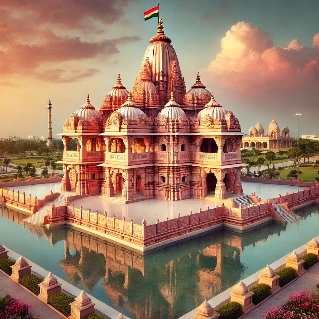 - The temple is built using pink sandstone and white marble, symbolizing eternal devotion and purity.