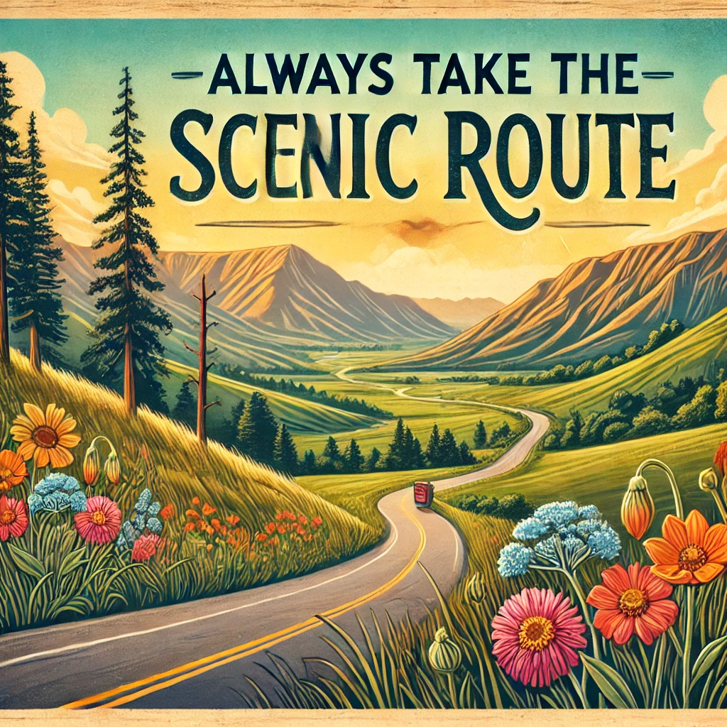 "Always take the scenic route" का संदेश हमें जीवन की यात्रा का आनंद लेने के लिए प्रेरित करता है। यह जीवन के हर पड़ाव को सुंदर और अर्थपूर्ण बनाने का एक तरीका है। चाहे वह यात्रा हो, करियर हो, या रिश्ते, हमेशा उस रास्ते को चुनें जो आपको नए अनुभवों और आंतरिक संतुष्टि की ओर ले जाए।