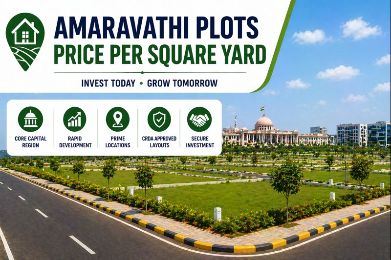 The price per square yard in Amaravati depends on location and development stage, ranging from ₹16,000 to ₹70,000+. With ongoing growth and increasing demand, Amaravati remains one of the best places for real estate investment in Andhra Pradesh.