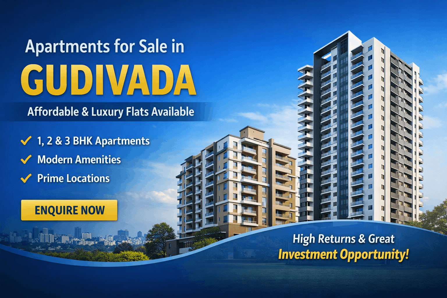 Gudivada is rapidly emerging as one of the most promising real estate destinations in Andhra Pradesh. With excellent connectivity, growing infrastructure, and increasing demand for residential spaces, apartments in Gudivada are becoming a top choice for both homebuyers and investors.