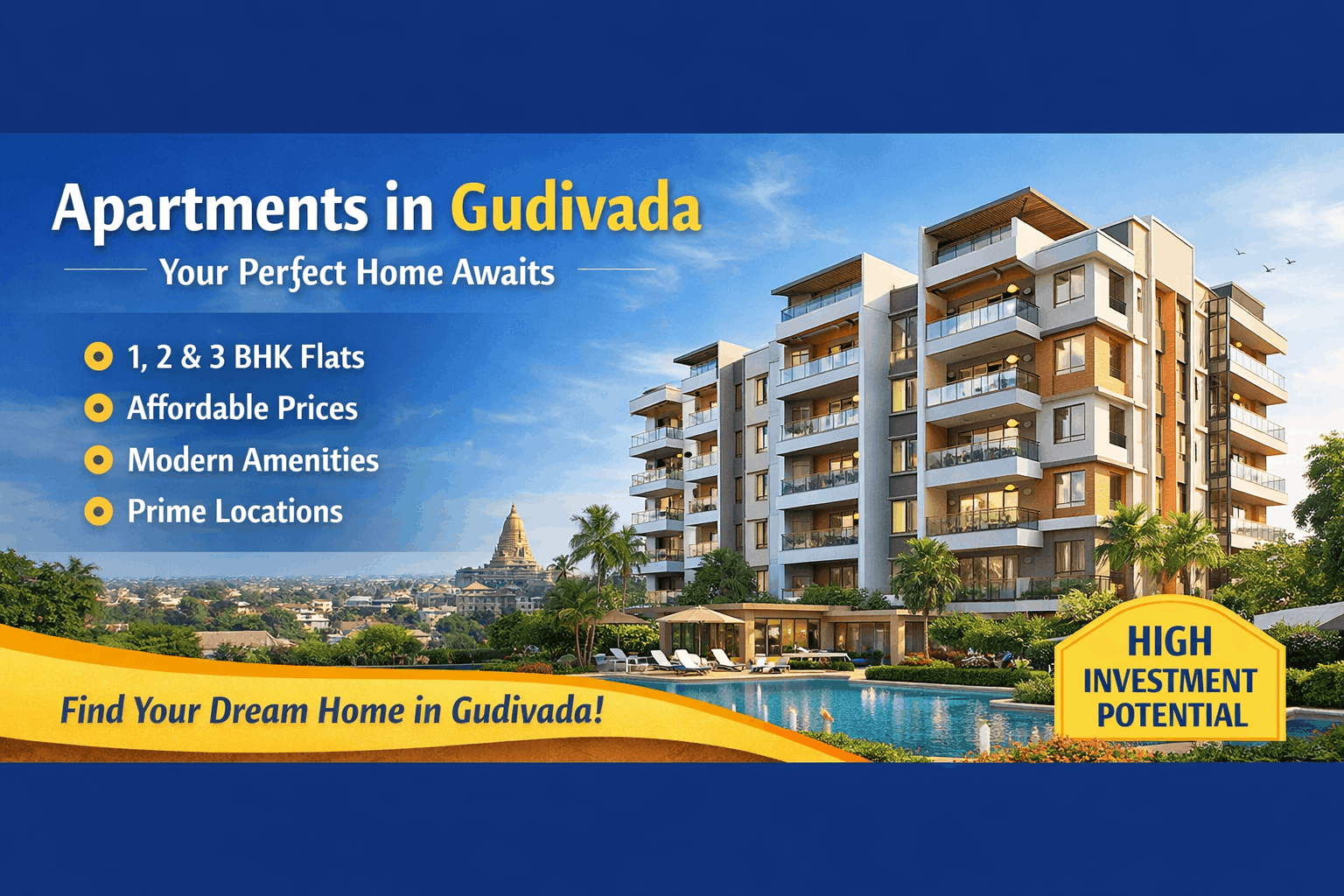 Gudivada, one of the fastest-growing towns in Krishna District, is emerging as a preferred destination for homebuyers looking for quality living at affordable prices. With rapid infrastructure development, excellent connectivity, and a peaceful environment, apartments in Gudivada are becoming a smart investment choice for both families and investors.