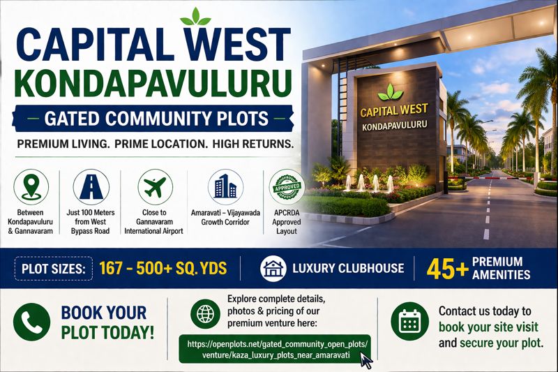 If you are searching for Capital West Kondapavuluru gated community plots price, this is the perfect time to explore one of the most premium real estate opportunities in the Amaravati growth corridor. This project offers luxury living with international standards, modern infrastructure, and strong future appreciation.