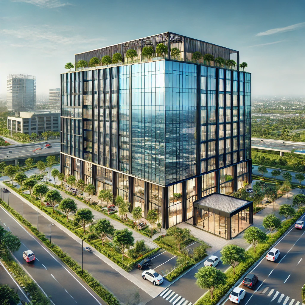 Modern commercial property in Hyderabad with office spaces and retail outlets
