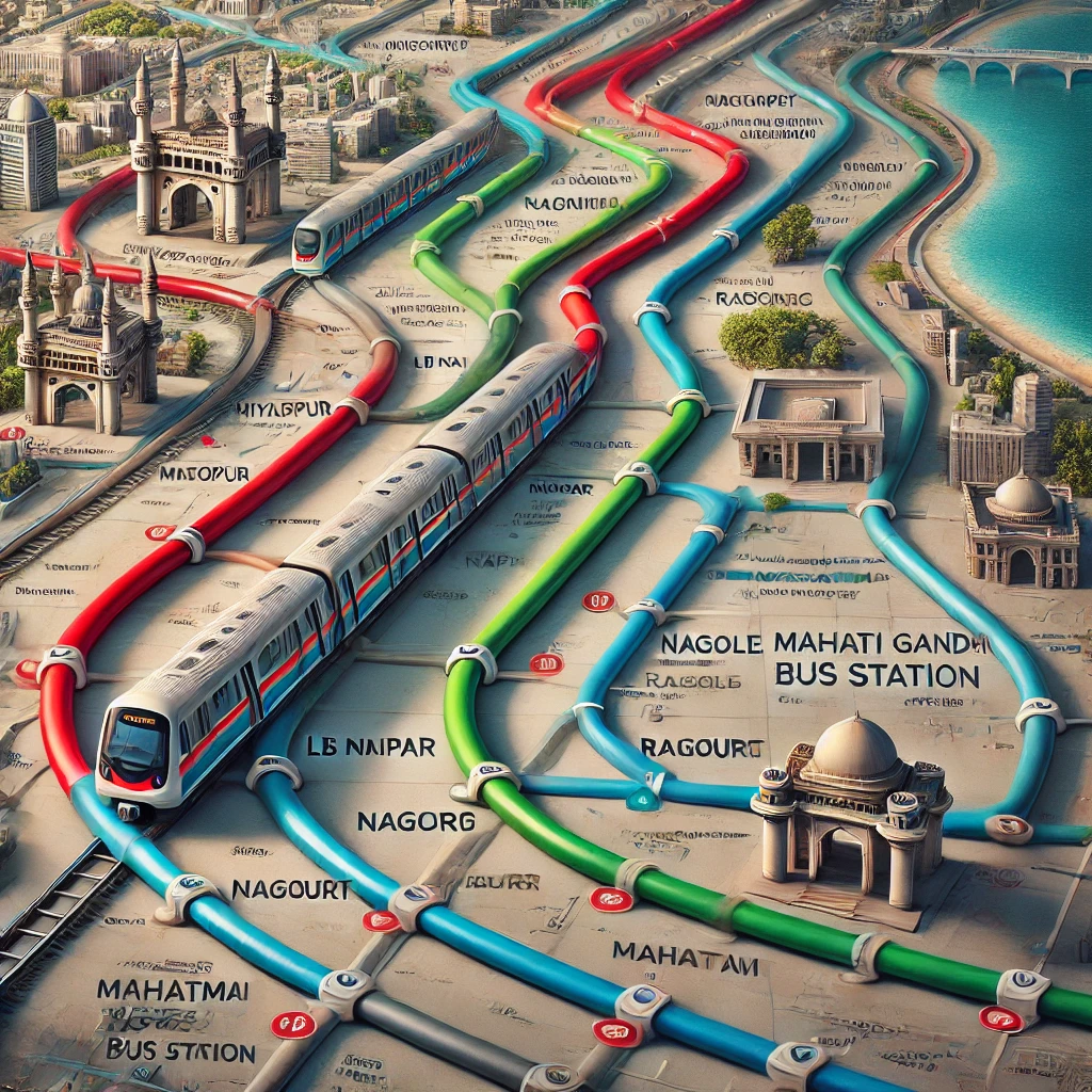 - Connects Nagole, Secunderabad, Ameerpet, Madhapur, and Raidurg.