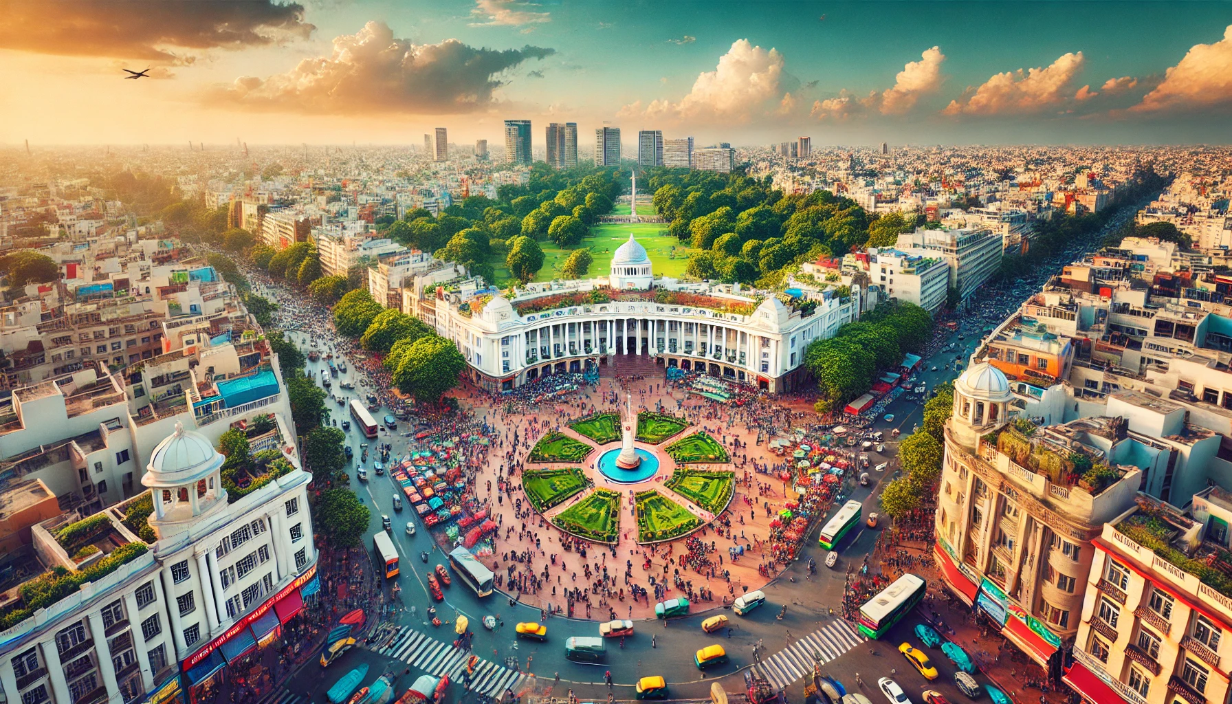 Aerial view of Connaught Place, shopping at Janpath Market, dining in CP, Connaught Place nightlife.