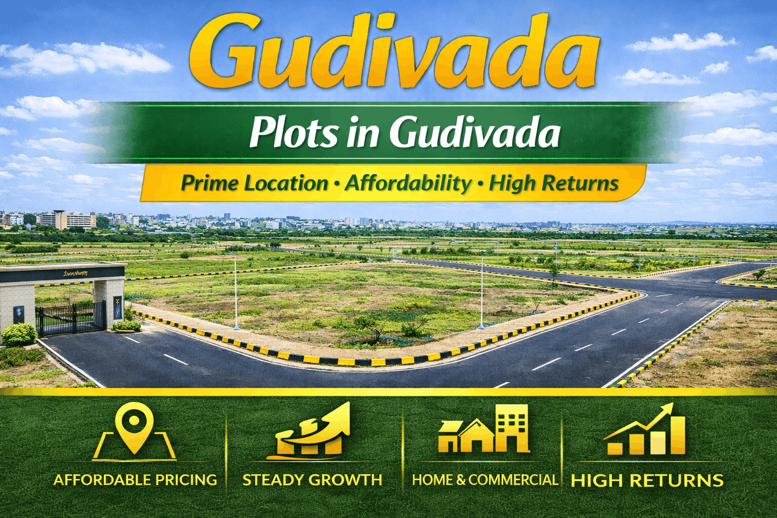 Investing in plots within the same town ensures better familiarity, convenience, and long-term value. Gudivada is rapidly developing into a real estate hotspot, offering affordable plots with strong growth potential.