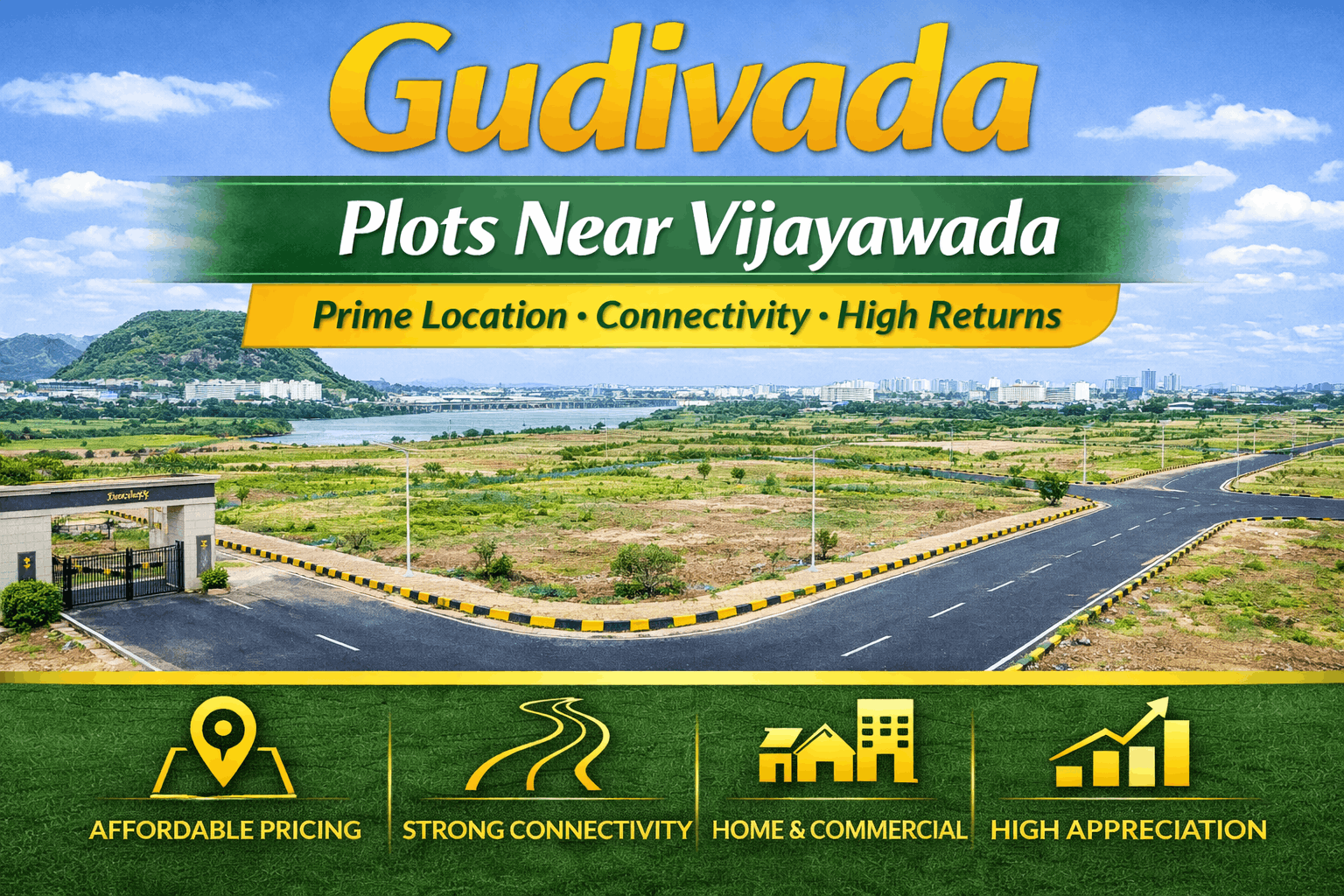 Real estate near major cities always attracts strong demand and faster appreciation. Gudivada, located close to Vijayawada, has become a prime destination for investors looking for affordable plots with excellent growth potential.