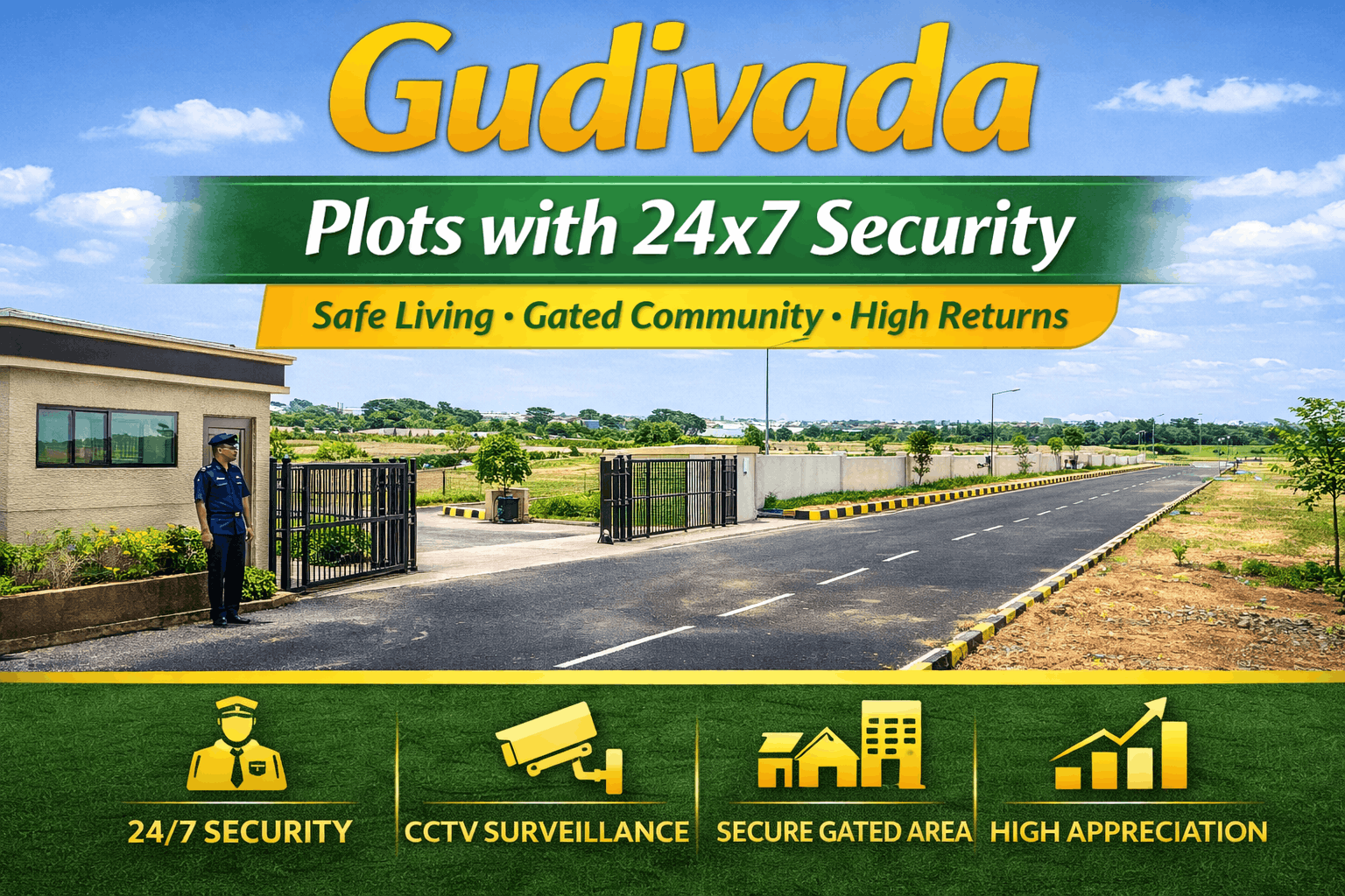 Security is one of the most important factors when buying a plot, especially for families and long-term investors. Gudivada is emerging as a preferred real estate destination, and plots with 24x7 security are gaining high demand.