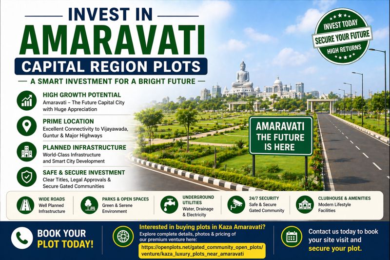 If you are planning to invest in Amaravati capital region plots, this is the right time to secure a valuable asset in one of Andhra Pradesh’s fastest-developing regions. Amaravati is designed as a modern capital city with strong infrastructure, making it a top choice for both residential buyers and investors.