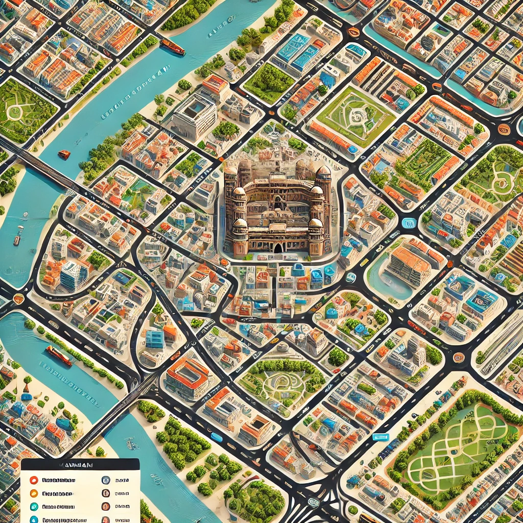 The town map of Khammam reveals the ongoing urban development projects that are contributing to its rapid growth. New residential complexes, commercial zones, and government initiatives are highlighted in various parts of the map, pointing to the town's modernization and expanding infrastructure.