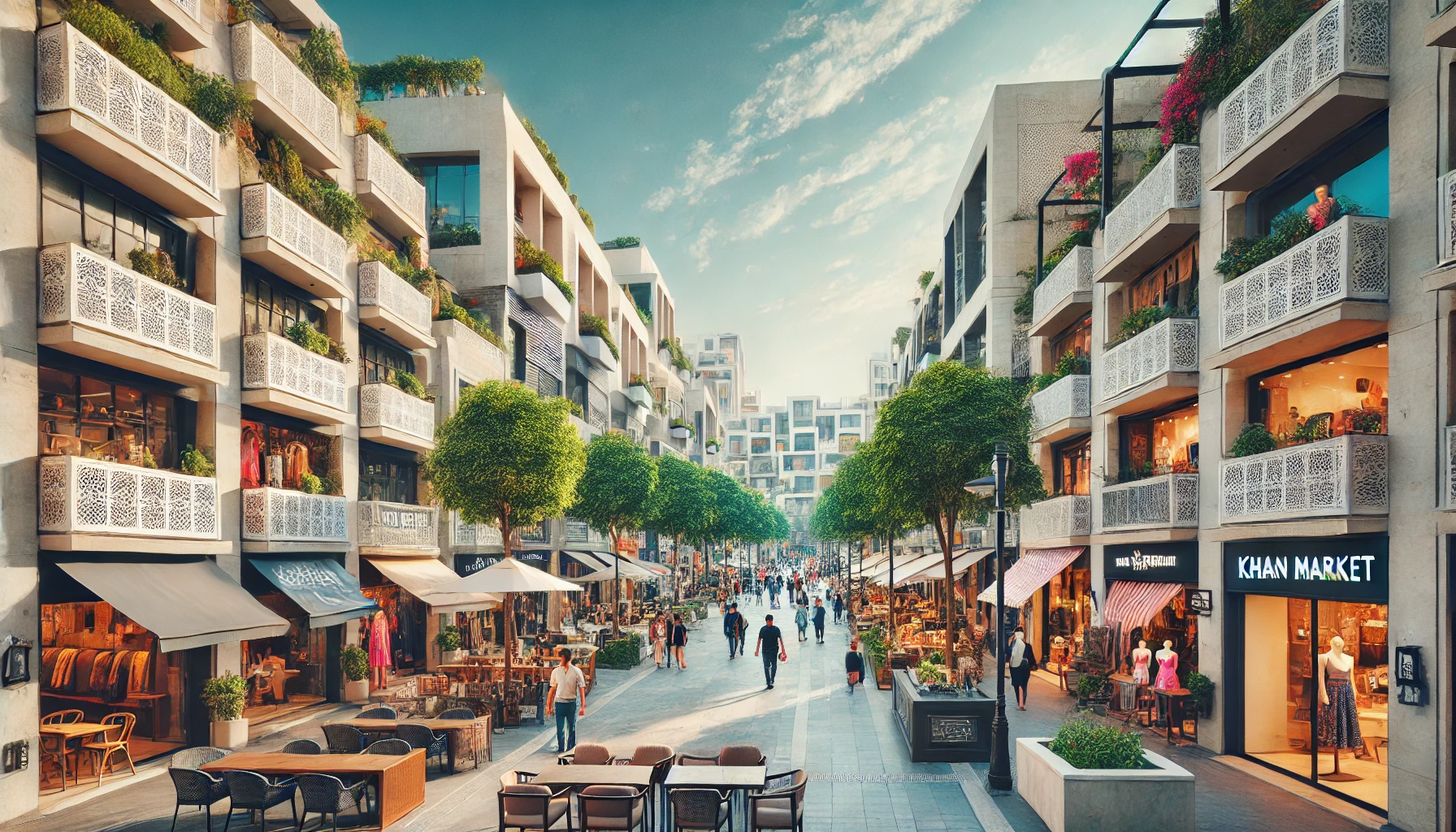 Boutique stores in Khan Market, cafes in Khan Market Delhi, shoppers exploring Khan Market, vibrant streets of Khan Market.