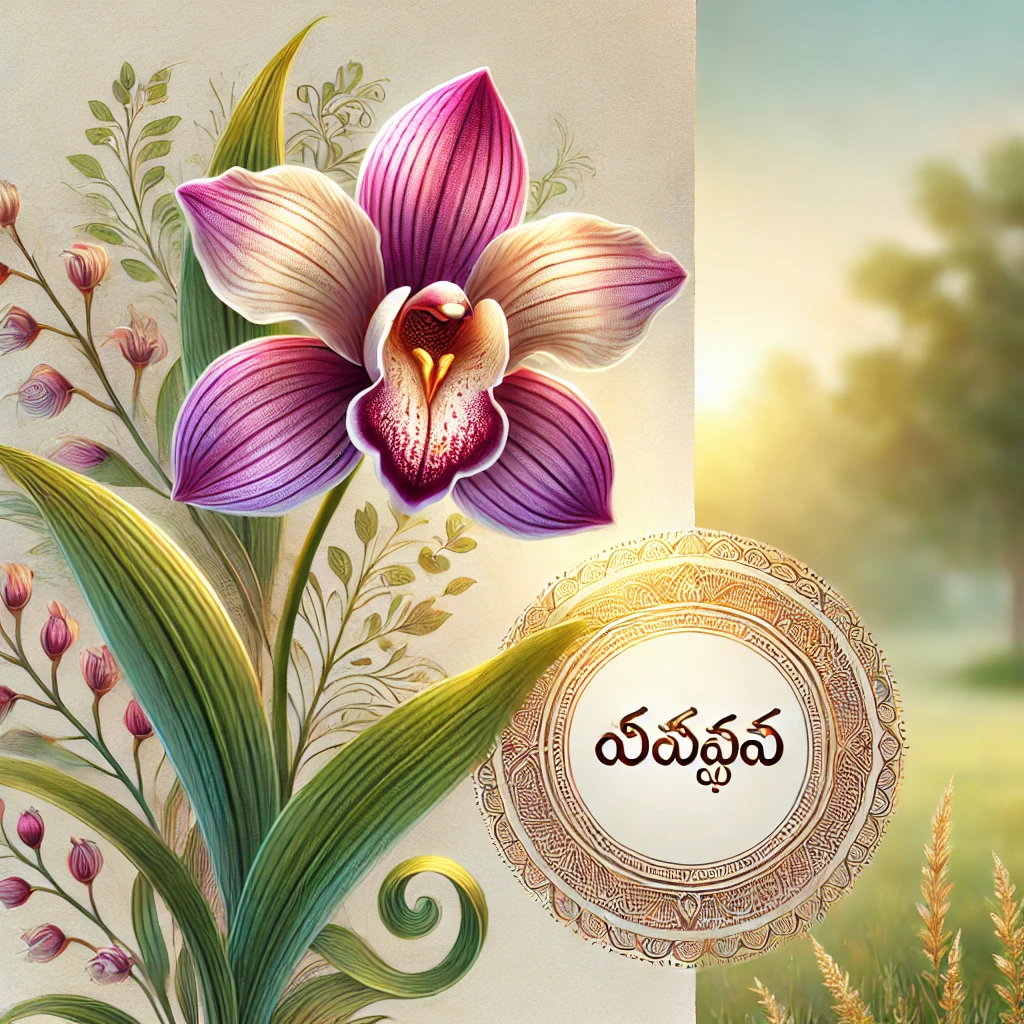 The word "Orchid" refers to a type of exotic and beautiful flower belonging to the Orchidaceae family. In Telugu, orchid is commonly referred to as "వందనమాల పుష్పం" (Vandanamala Pushpam) or simply "ఓర్చిడ్ పువ్వు" (Orchid Puvvu). These flowers are known for their vibrant colors, intricate patterns, and elegant appearance.