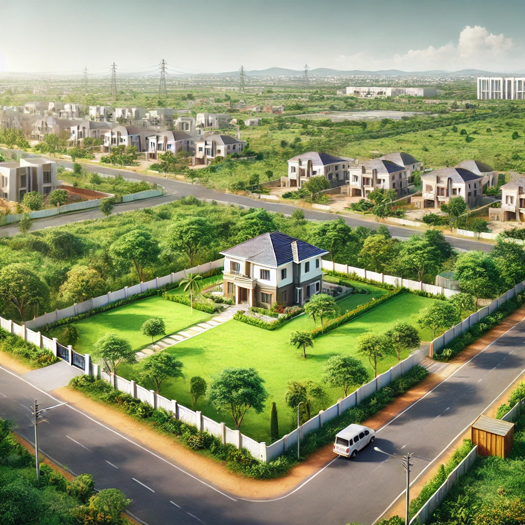 A prime residential plot in Nellore with clear boundaries, lush green surroundings, and proximity to urban infrastructure.