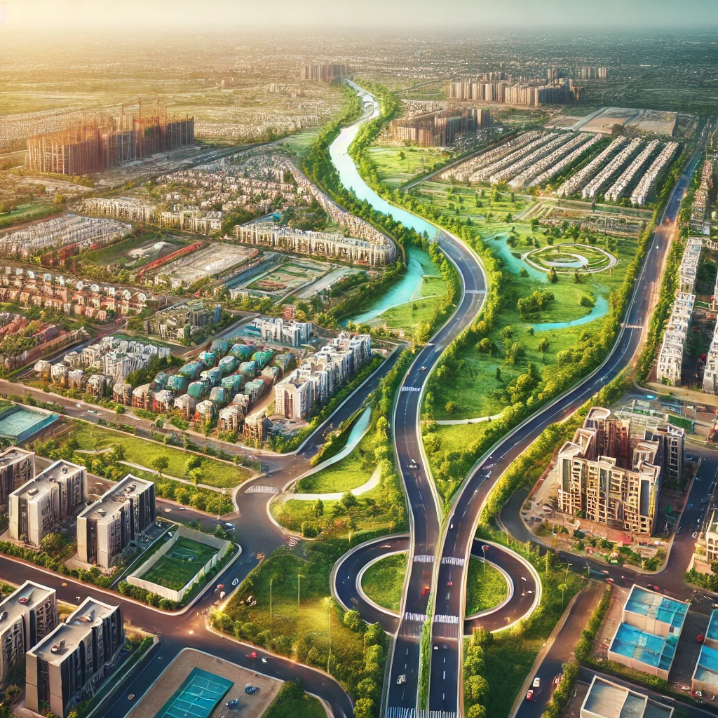 Plots for sale in Indore city, showcasing modern infrastructure, well-laid roads, and serene surroundings in prime locations like Super Corridor and Vijay Nagar