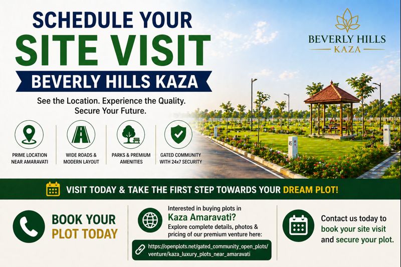 Planning to schedule a site visit for Beverly Hills Kaza? This is the best way to experience the layout, infrastructure, and premium quality of one of the most sought-after gated communities in the Amaravati capital region.