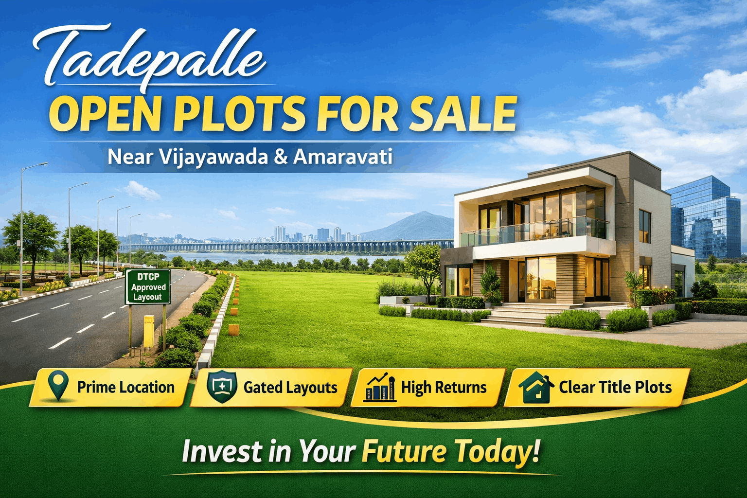 Tadepalle is one of the fastest-growing residential and investment hotspots near Vijayawada and Guntur. With its strategic location along the Krishna River and proximity to the capital region Amaravati, Tadepalle has become a preferred destination for homebuyers and investors looking for premium open plots.