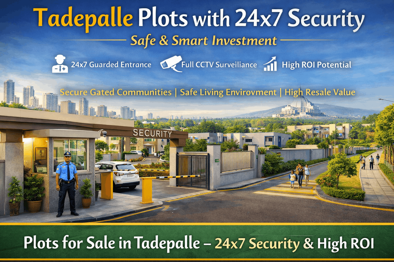Tadepalle plots with 24x7 security offer the perfect blend of safety, modern infrastructure, and investment potential. It’s the right time to invest in a secure and fast-growing location for a better future.