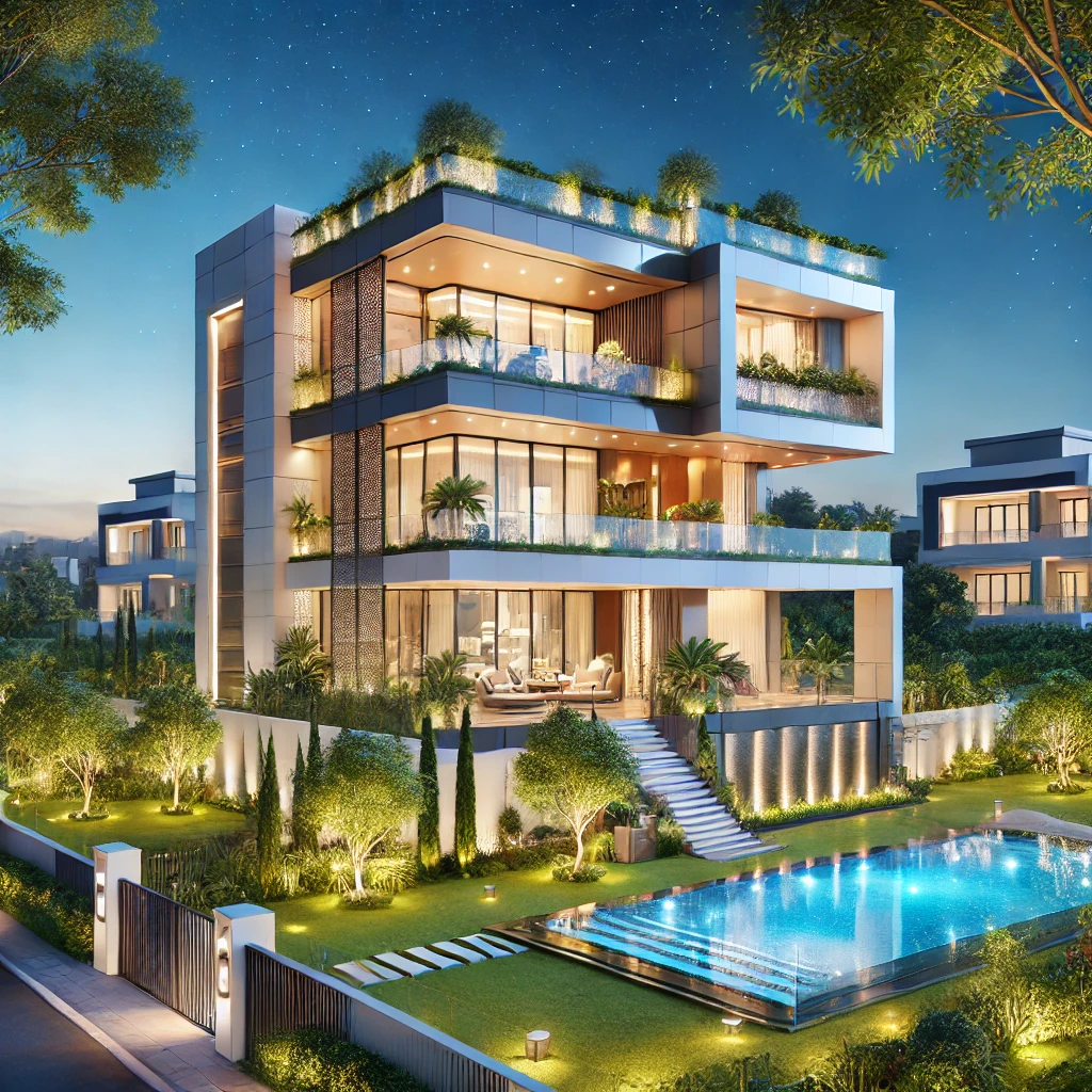 Modern villas come equipped with state-of-the-art facilities such as private swimming pools, landscaped gardens, smart home automation, and premium interiors. They are designed to offer the perfect blend of comfort and style. -