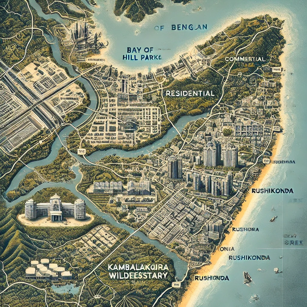 Residential Zones: The city's residential areas are spread across thousands of acres. Prominent neighborhoods like Seethammadhara, Gajuwaka, Madhurawada, and Rushikonda are known for their real estate growth. Several gated communities and high-rise apartments are being developed to cater to the growing population.