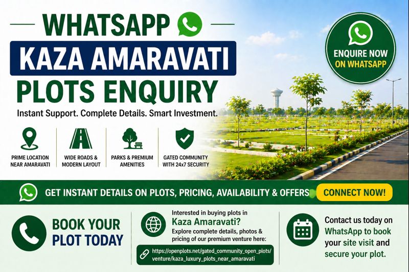 Looking for a quick and easy way to make a WhatsApp enquiry for Kaza Amaravati plots? This is the fastest way to get complete details, pricing, availability, and site visit information directly on your phone.