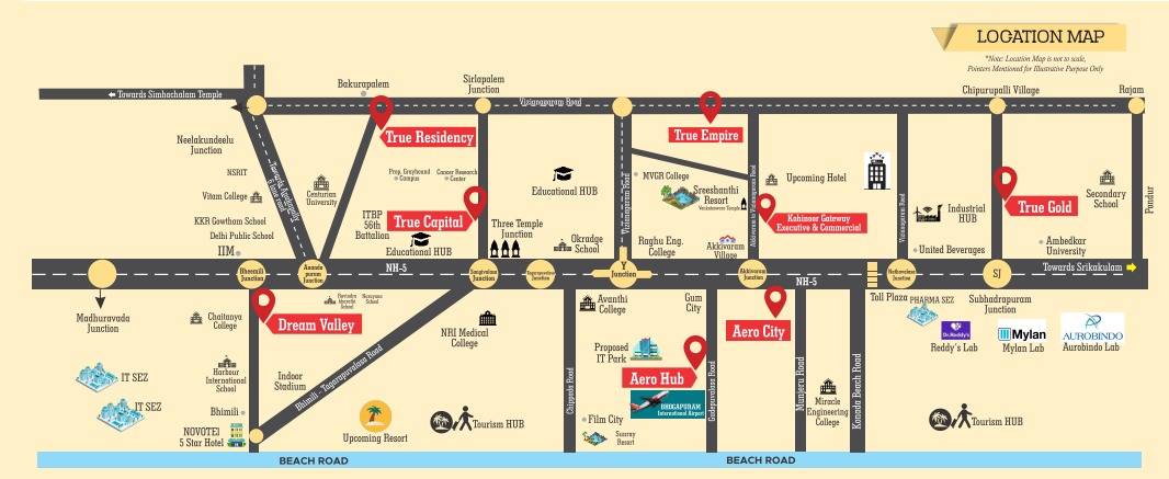 Equidistant to Vizag, Vizianagaram, and Srikakulam Districts: Strategically located to offer balanced access to these three significant districts, residents can enjoy the diverse cultural, educational, and economic opportunities each area provides.